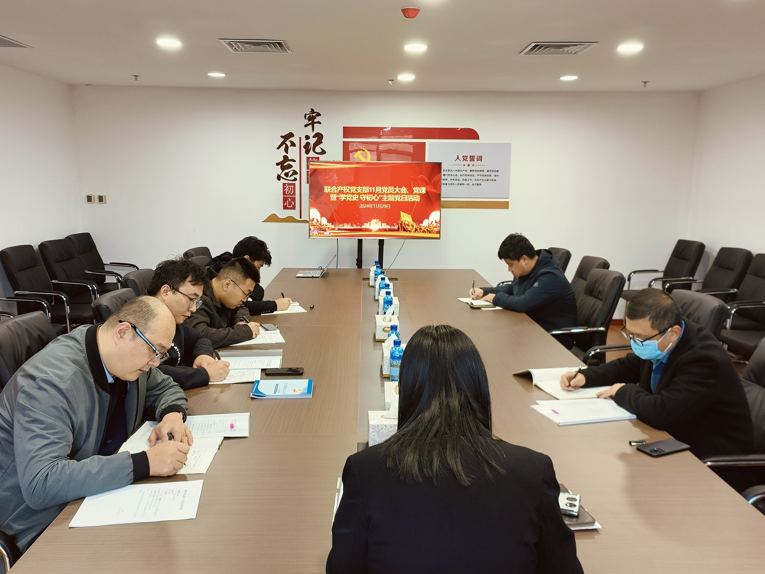 11月29日聯(lián)合產(chǎn)權(quán)黨支部召開11月黨員大會、黨課暨“學(xué)黨史 守初心”主題黨日活動,黨支部副書記主持,支部黨員參加會議。