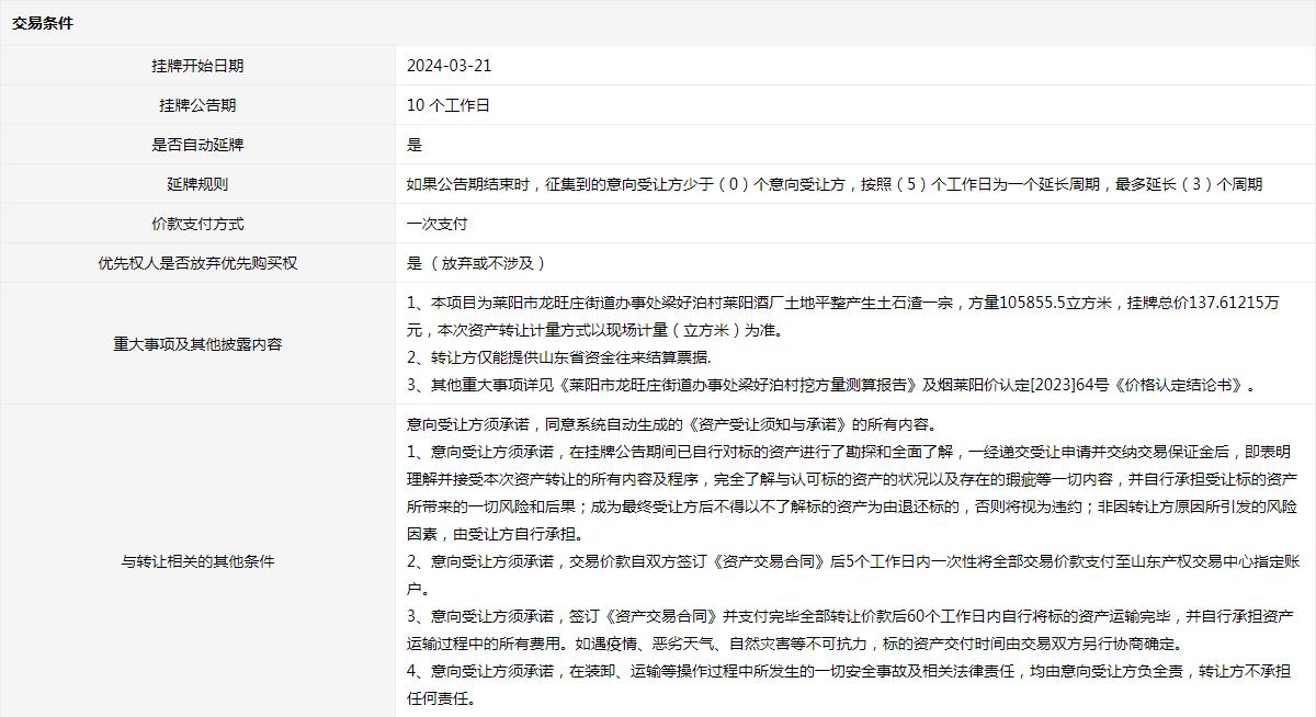 掛牌起止日期:2024年03月21日至2024年04月25日