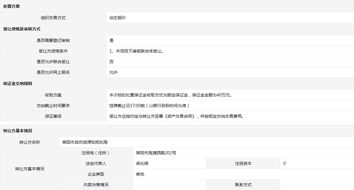 轉(zhuǎn)讓方:萊陽市自然資源和規(guī)劃局