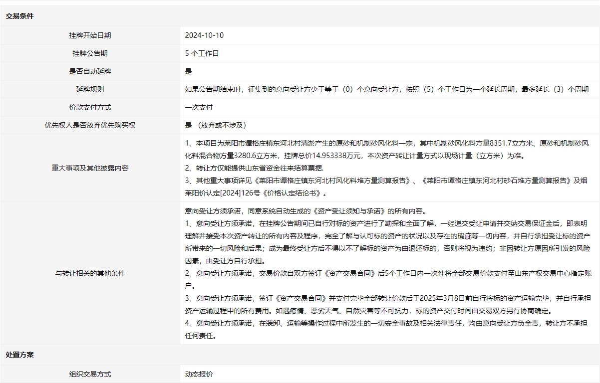 - 轉(zhuǎn)讓方:萊陽(yáng)市自然資源和規(guī)劃局