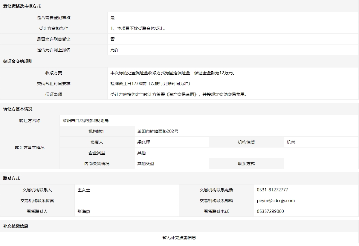 轉(zhuǎn)讓方:萊陽市自然資源和規(guī)劃局