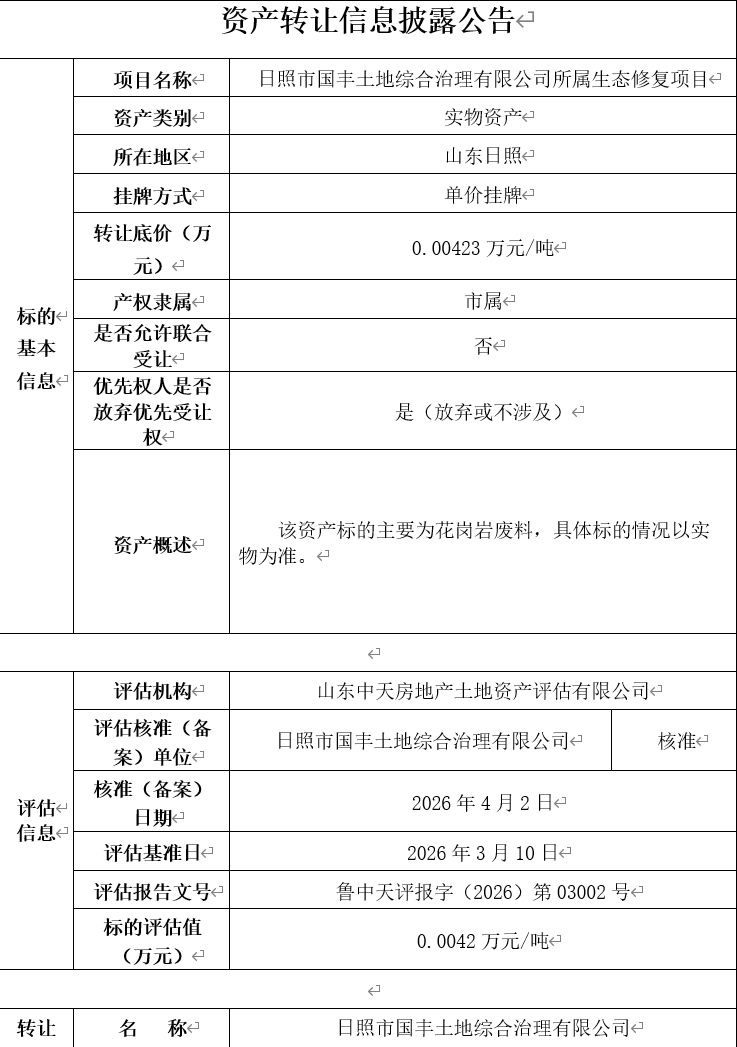 日照市國豐土地綜合治理有限公司所屬生態(tài)修復(fù)項目
