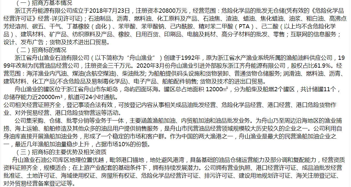 浙江省舟山漁業(yè)石油有限公司61.9%股權(quán)