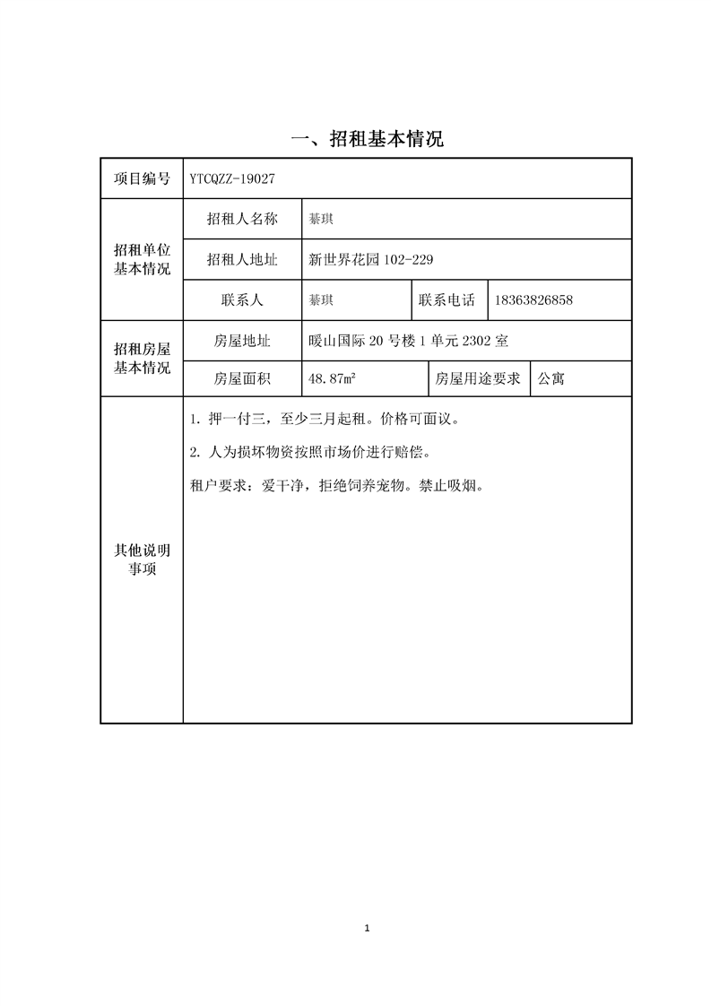 暖山國際20號(hào)樓1單元2302室招租
