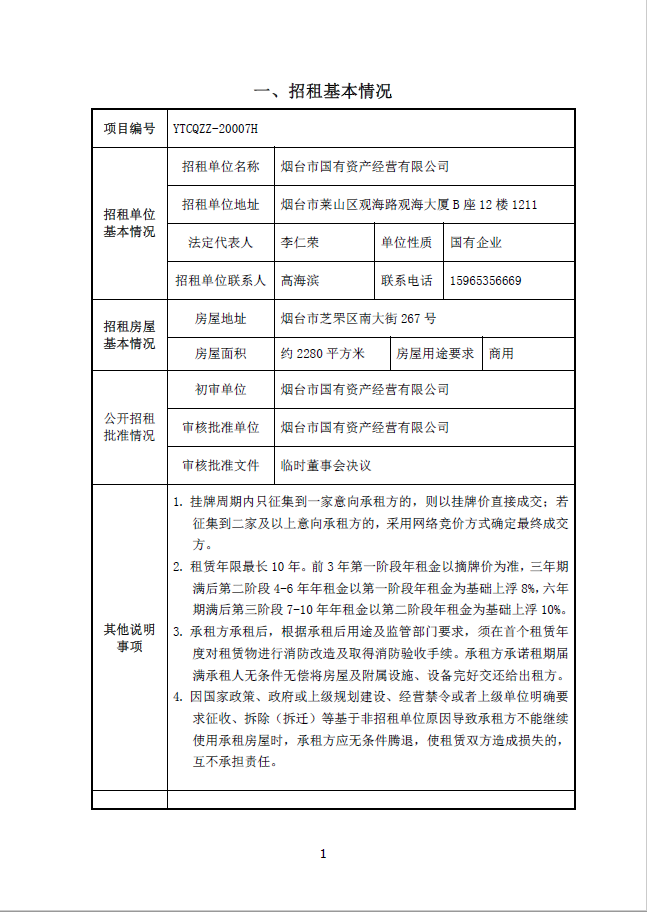 煙臺(tái)市南大街267號(hào)1-7層(除一樓東側(cè)門(mén)頭房)、東側(cè)停車場(chǎng)招租公告
